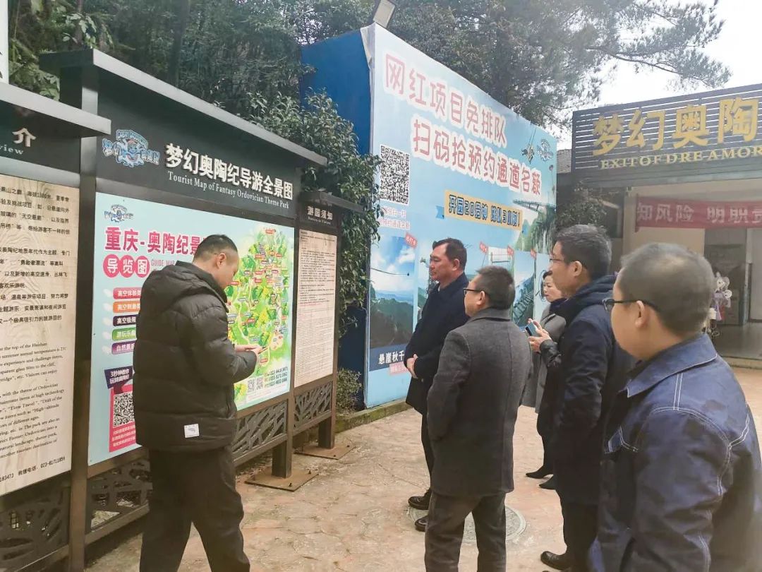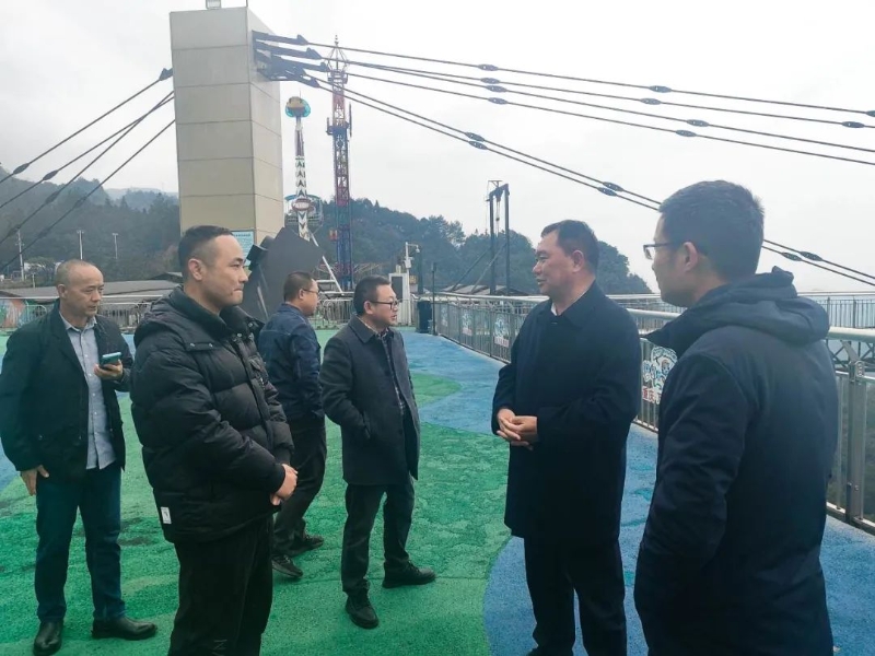 付樸忠一行先后參觀了云端廊橋、玻璃吊橋、懸崖秋千等特色主題項目。他指出,“奧陶紀主題公園”因目前世界上最長的懸挑空中玻璃走廊而聞名,是集觀賞、休閑、度假于一體的全國首家體驗式地質(zhì)主題公園。奧陶紀旅游度假景區(qū)的成功打造,對萬盛區(qū)旅游經(jīng)濟的持續(xù)發(fā)展、群眾生活質(zhì)量的提高、富余勞動力的充分利用都發(fā)揮了積極作用。